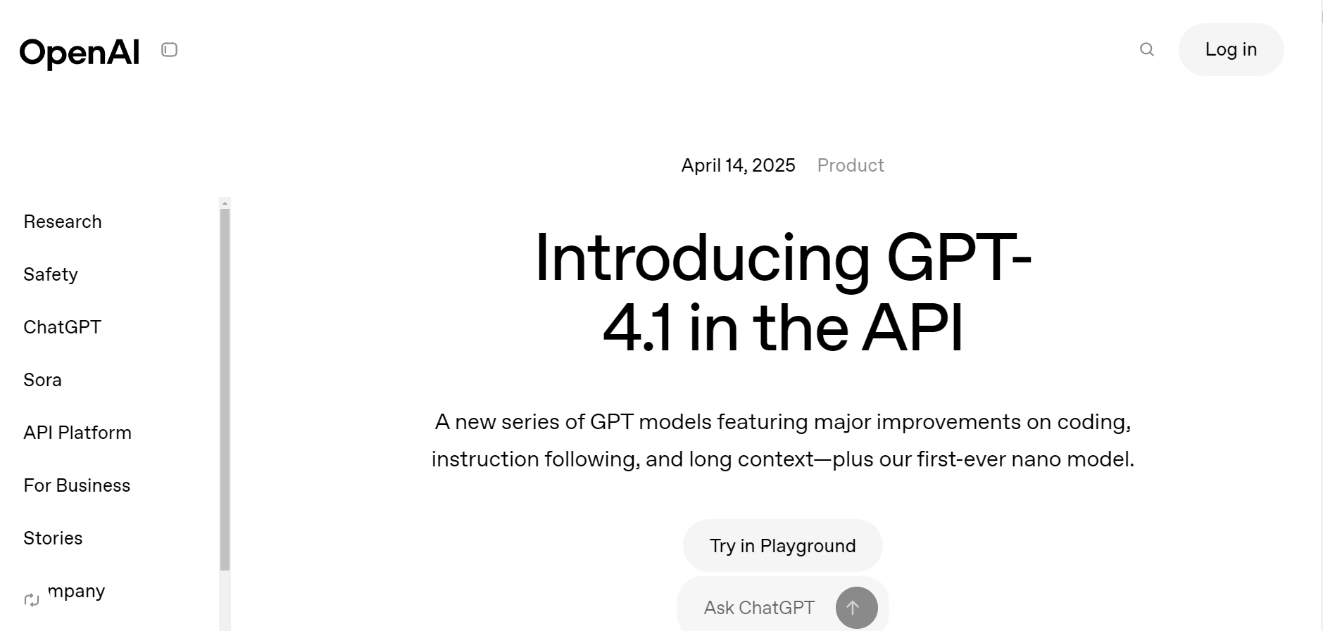 当日,OpenAI首席执行官奥特曼表示,GPT-4.1(以及-Mini和-Nano)现已在API中可用。