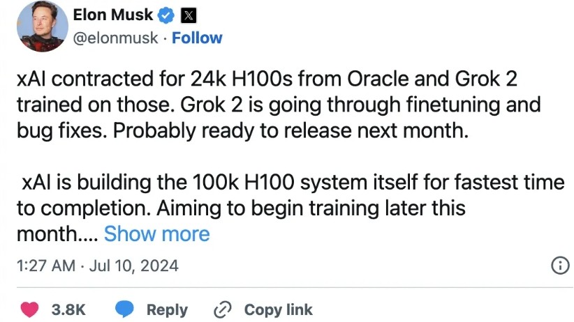 马斯克:xAl正在自己搭建数据中心系统xAl正在自己搭建由10万块H100构成的(数据中心)系统天牛配资。