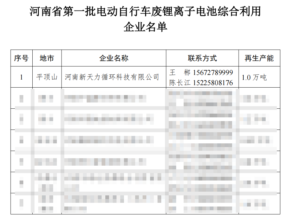 近日鼎牛配资,河南省工业和信息化厅发布《关于公布第一批电动自行车废锂离子电池综合利用企业的通知》,河南新天力循环科技有限公司成功入选河南省第一批电动自行车废锂离子电池综合利用企业名单,成为平顶山市唯一获此资质的企业。