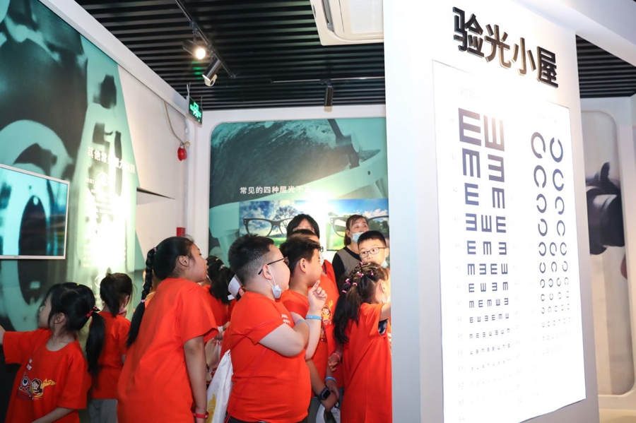 眼镜博物馆的“验光小屋”引来小学生们关注。新民晚报记者 徐程 摄
