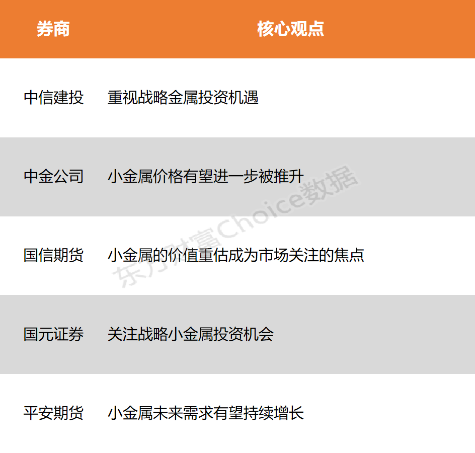 近年来,一众战略小金属价格中枢呈显著上移态势,主要原因在于资源稀缺性及供给刚性日益凸显、需求端受益于新能源、新材料、制造业升级、军工等发展,叠加关键矿产资源已成为各国博弈的新“战场”,持续看好国内优势战略矿种价值回归及股票估值重估,建议重视战略金属投资机遇。